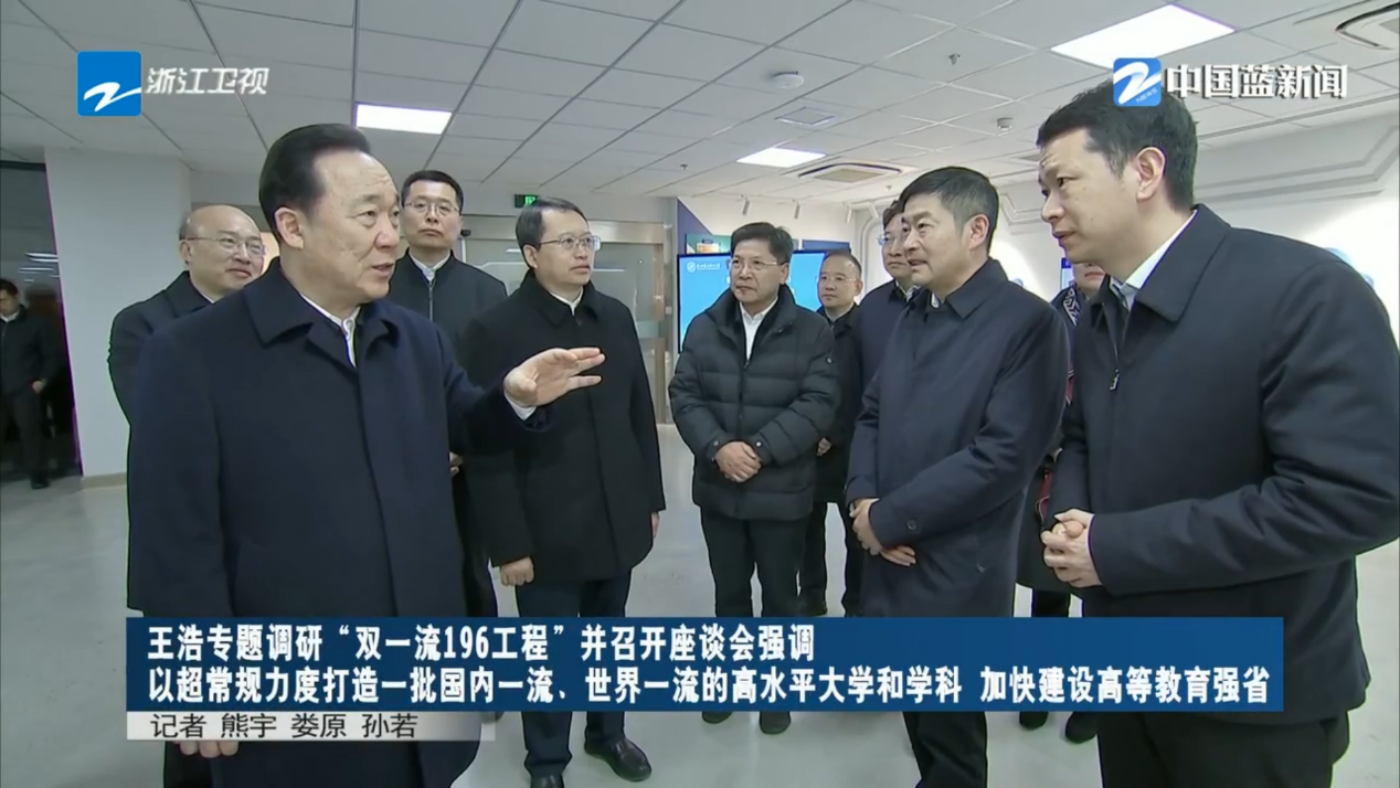1月5日,省委书记王浩专题调研“双一流196工程”,图为在杭州电子科技大学考察。